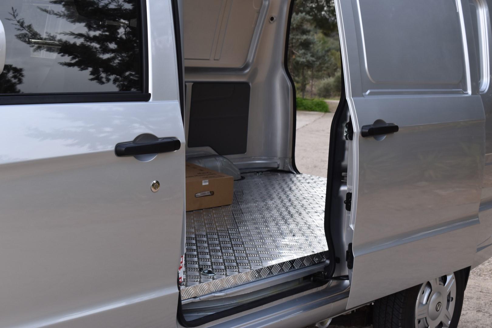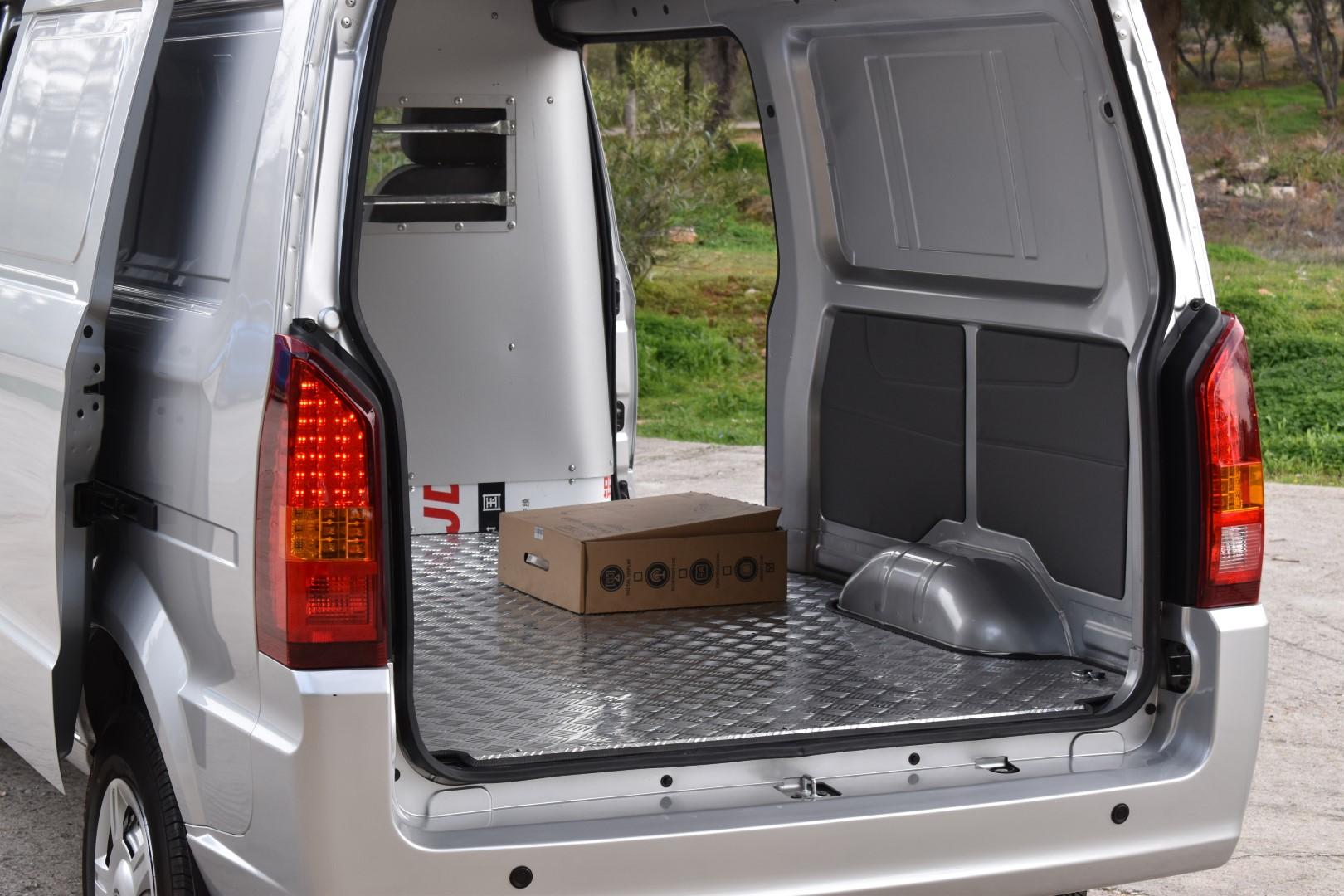 Μέσα στο χώρο φόρτωσης των 4,3 κυβικών υπάρχει ένα μικρό LED για φωτισμό (θα θέλαμε έστω ένα δεύτερο), μεταλλικό πάτωμα (αλλά προαιρετικά διατίθεται και ξύλινη επένδυση), μαλακά μαξιλαράκια στις δύο πλευρές και κρίκοι στο πάτωμα για πρόσδεση φορτίων. Ένα μικρό, πλαστικό παράθυρο επιτρέπει την ορατότητα από την καμπίνα προς τον χώρο φόρτωσης και συνολικά, δύσκολα θα βρείτε βανάκι με καλύτερο λόγο χώρου φόρτωσης/εξωτερικές διαστάσεις.