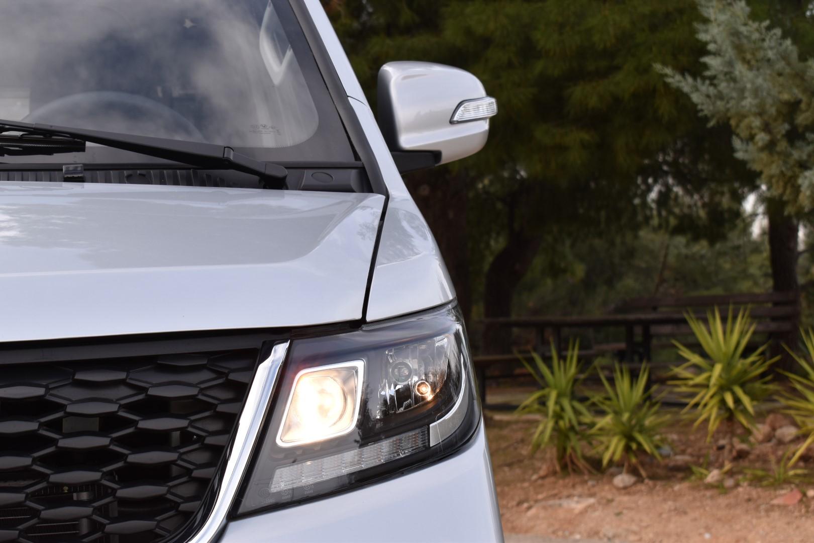 Τα εμπρός φώτα αποτελούνται από projectors με λυχνίες αλογόνου αλλά και “ψυχρά” LED DRLs/φλας, ενώ πίσω έχουμε δύο κάθετα φωτιστικά σώματα, επίσης LED. Τα φώτα μας ικανοποίησαν μέρα και νύκτα, ενώ υπάρχουν και προβολείς ομίχλης εμπρός, όπως και σύστημα “Auto” για τα φώτα που λειτούργησε ικανοποιητικά στις δοκιμές μας. Το ύψος της δέσμης τους ρυθμίζεται ηλεκτρικά. Πίσω τζάμι δεν υπάρχει, υπάρχουν όμως αισθητήρες στάθμευσης και κάμερα οπισθοπορείας. Η είσοδος/έξοδος επιβατών (2) είναι εύκολη και… πάμε στα πιο σημαντικά.