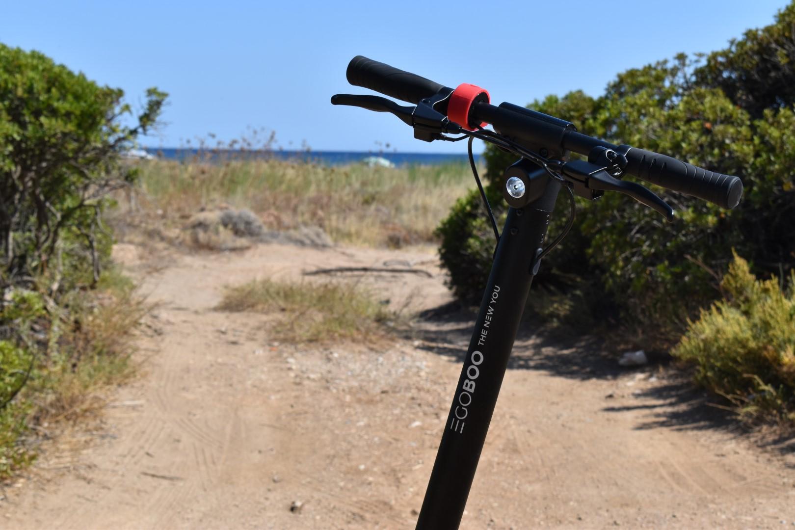 Καθώς το EGOBOO Gladiator X9 μπορεί να “ρολλάρει” ελεύθερα στις κατηφόρες, χωρίς γκάζι, φτάσαμε μέχρι και τα 40 Km/h πάνω του, χωρίς να μας προβληματίσει η συμπεριφορά του ακόμα και σε αυτή την ταχύτητα (αν και κάπου εκεί άρχισε να φαίνεται το μικρό πλάτος του τιμονιού). Από τα πρώτα χιλιόμετρα γίνεται αντιληπτό οτι είναι ένα στιβαρό πατίνι με σωστή σχεδίαση, παρά το μικρό μεταξόνιο. Δεν διαθέτει ανάρτηση, βέβαια (μπορείτε να δείτε το EGOBOO Challenger, με ανάρτηση εμπρός και πίσω, το οποίο θα παρουσιάσουμε αργότερα μέσα στο έτος), άρα η όποια απόσβεση κραδασμών είναι μικρή και οφείλεται κυρίως στα ελαστικά.
