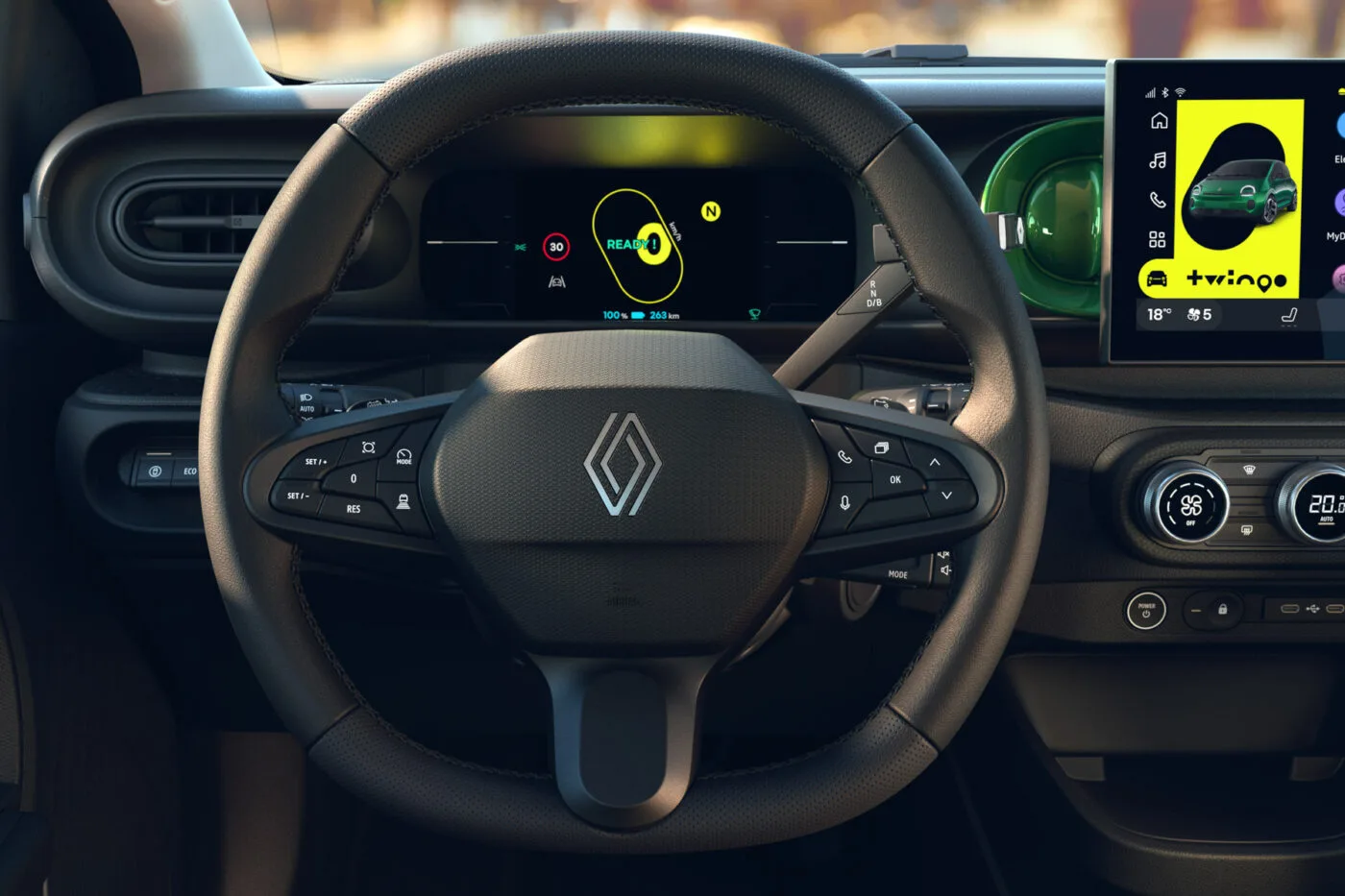 Από την έκδοση Techno και πάνω, το Twingo προσφέρει one-pedal driving και paddles στο τιμόνι για τη ρύθμιση των επιπέδων regen. Η βασική έκδοση Evolution δεν διαθέτει αυτά τα χαρακτηριστικά. Ο φωνητικός βοηθός της Renault «Reno», που είναι ήδη διαθέσιμος στο Renault 5 E-Tech και στο Renault 4 E-Tech, εμφανίζεται και στο Twingo. Μπορεί να ελέγχει τις λειτουργίες του οχήματος και, μέσω της ενσωμάτωσης της έκδοσης 4.0-mini του ChatGPT, να παρέχει κατανοητές απαντήσεις γενικού περιεχομένου.