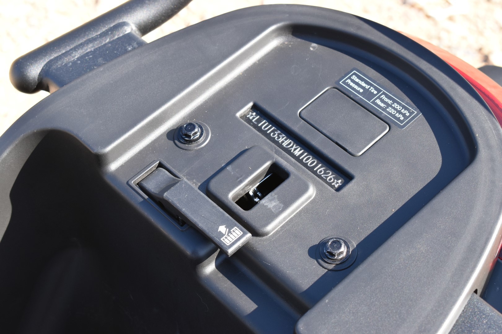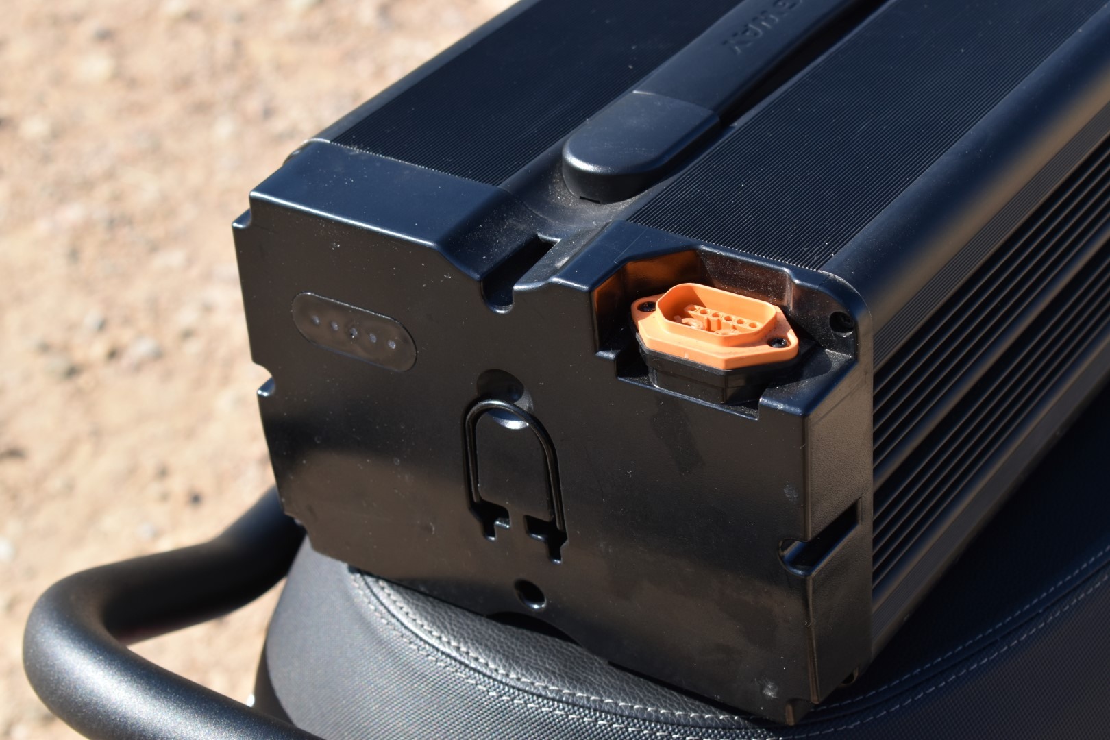 Το διαμέρισμα της μπαταρίας κλείνει με ένα παχύ καπάκι, που ταυτόχρονα είναι τμήμα του deck. Εδώ είναι και το μόνο αδύναμο σημείο της κατασκευής που εντοπίσαμε, τουλάχιστον στο δικό μας μοντέλο. Το καπάκι πάντα άφηνε ένα μικρό κενό στη δεξιά του πλευρά, ακόμα και “κουμπωμένο”. Είναι σχεδιασμένο ώστε να στεγανοποιεί το διαμέρισμα αυτό και παρά το “κενό” που άφηνε σε εμάς, σε πλύσιμο με πιεστικό, δεν πέρασαν νερά στη μπαταρία. Το καπάκι απασφαλίζει μέσω ενός λεβιέ που βρίσκεται μέσα στο χώρο κάτω από τη σέλα. Σίγουρα είναι λίγο πιο δύσκολη η αφαίρεση και επανατοποθέτηση της μπαταρίας τόσο χαμηλά. Από την άλλη, βοηθά στο χαμηλό κέντρο βάρους και τη σταθερότητα, ενώ δεν στερεί και αποθηκευτικό χώρο κάτω από τη σέλα.