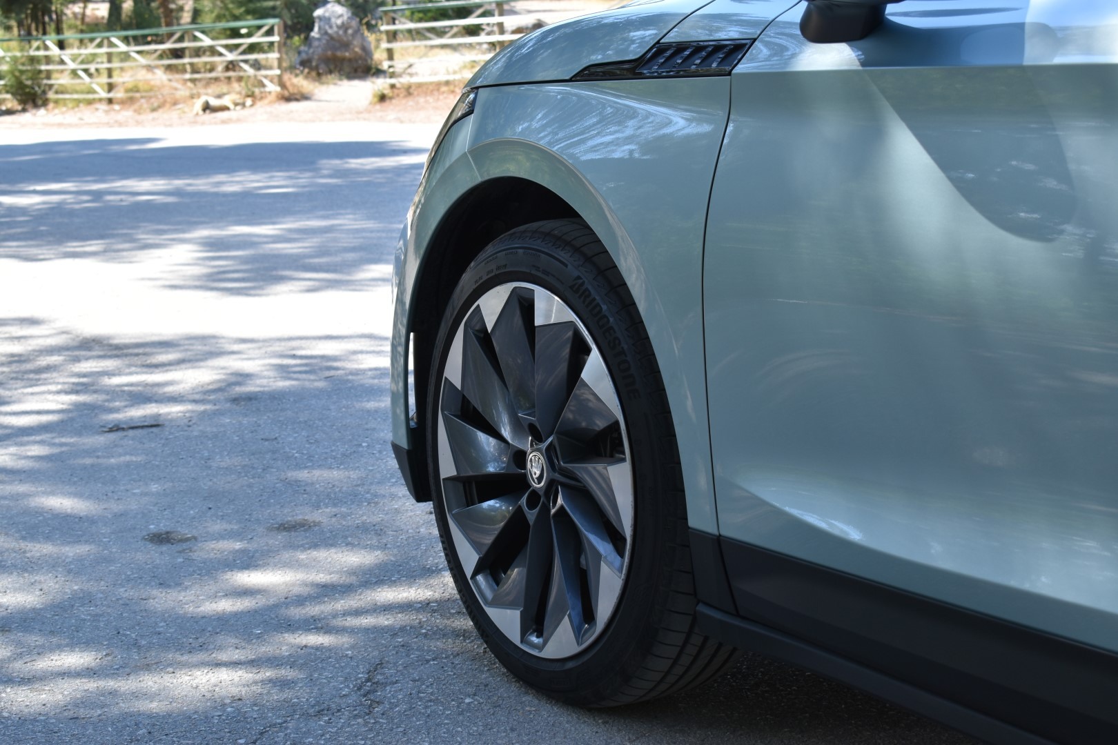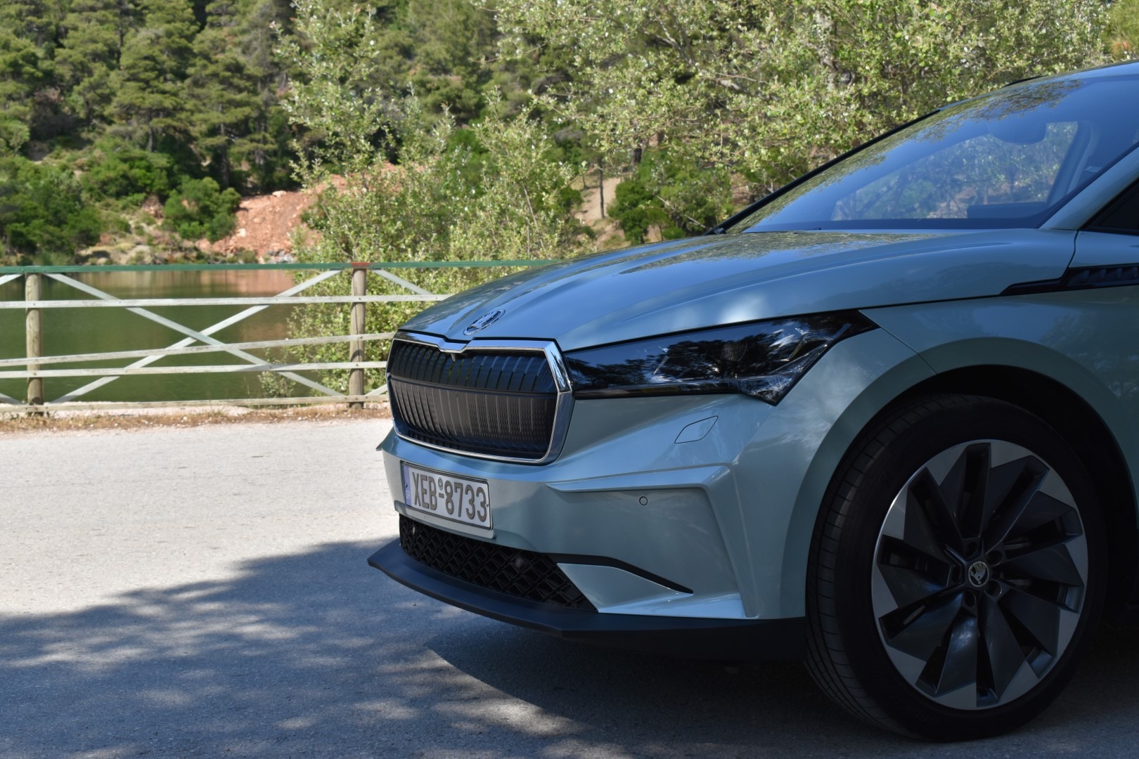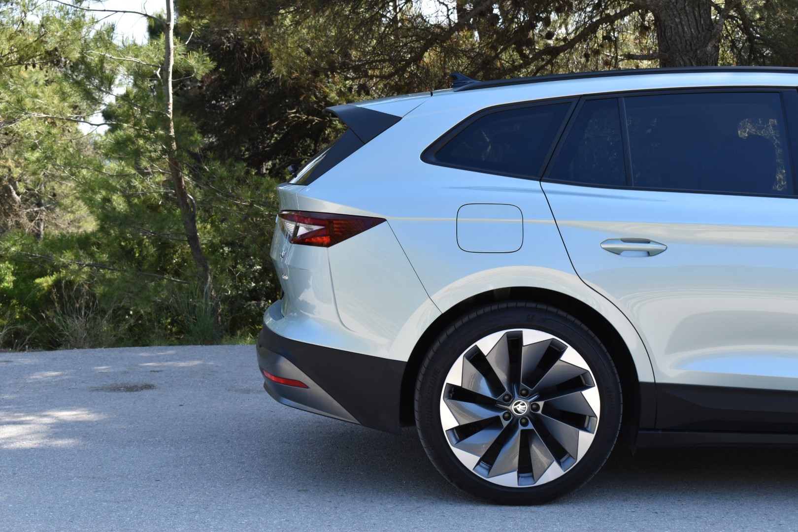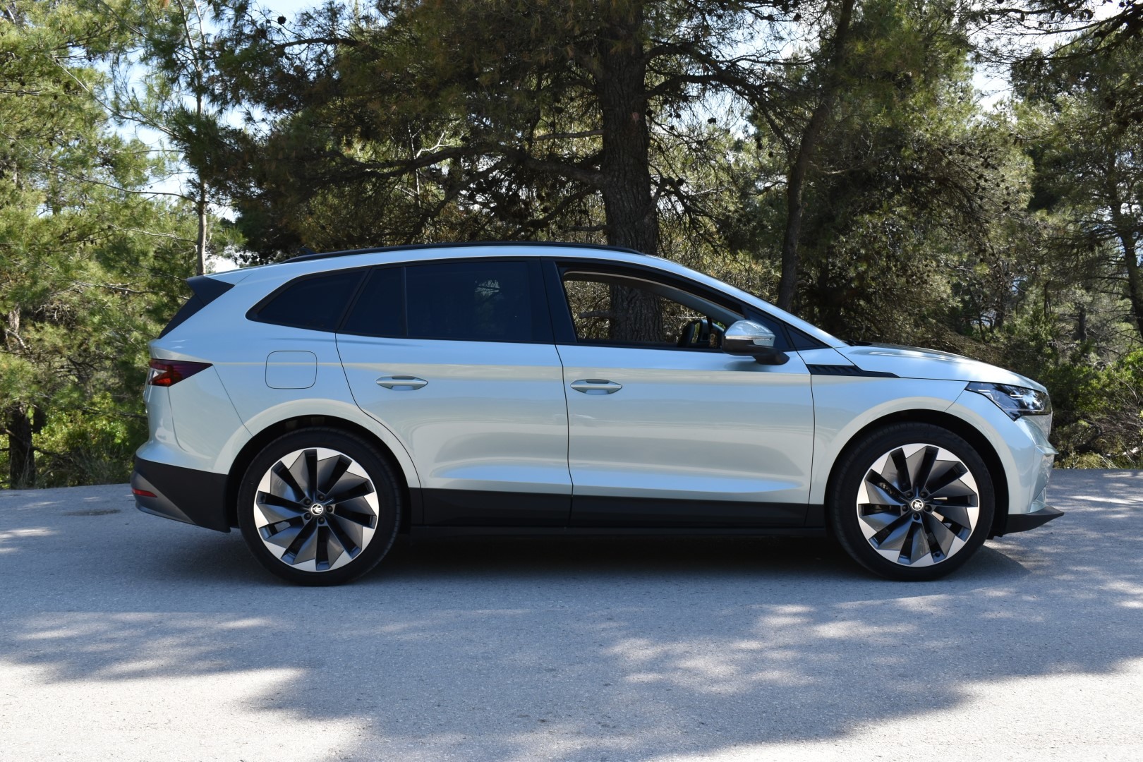 Αξίζει να σημειώσουμε τον πολύ καλό αεροδυναμικό συντελεστή (0,258 Cd) του μοντέλου της Skoda. Επιτυγχάνεται χάρη στα αεροδυναμικά βοηθήματα στον εμπρός προφυλακτήρα, το πίσω diffuser και την αεροτομή αλλά και το flat πάτωμα που είναι χαρακτηριστικών των περισσότερων EVs.