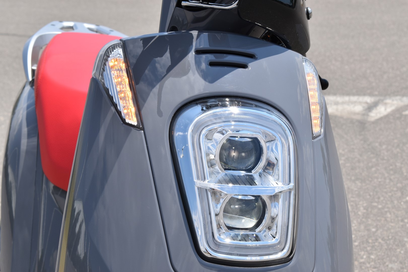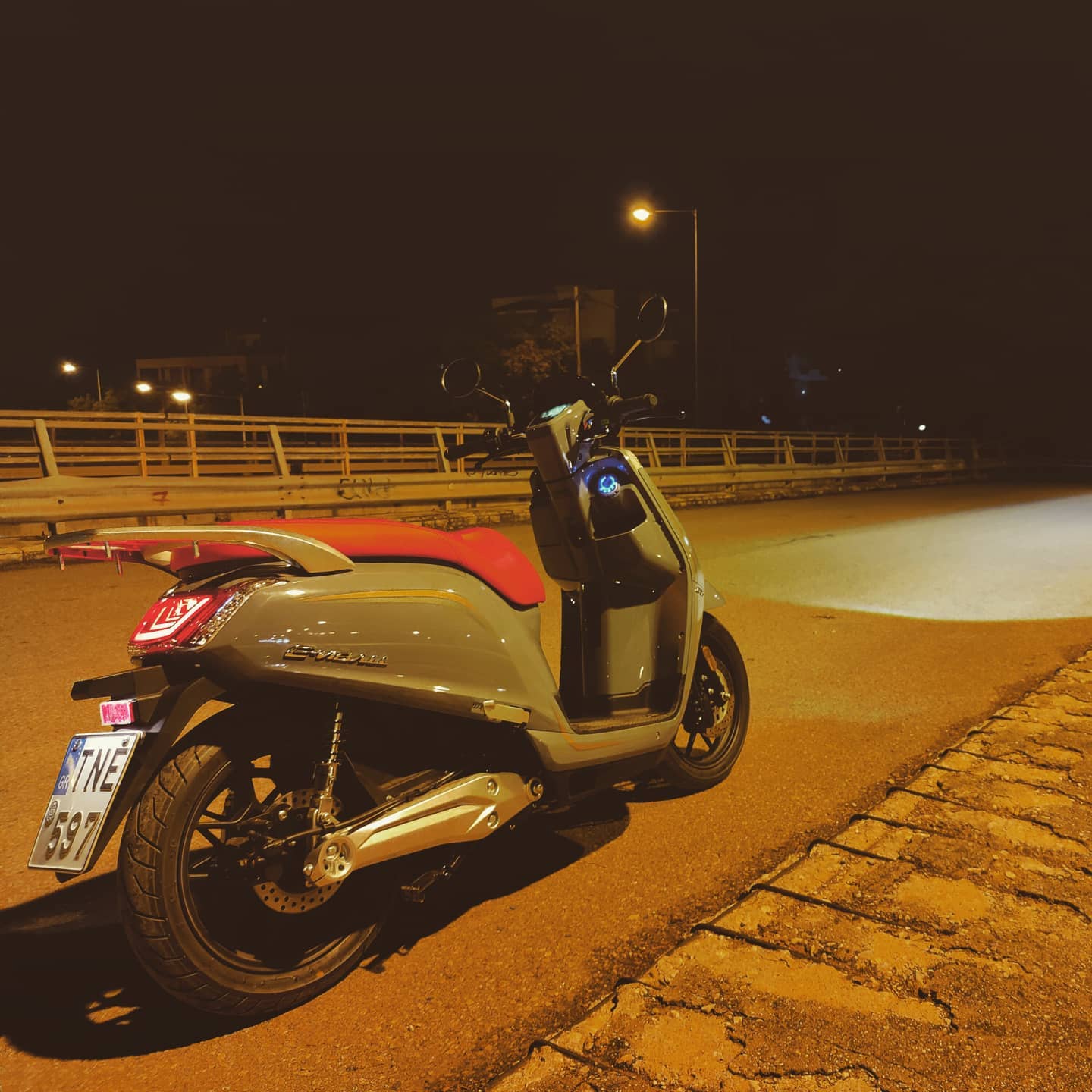 Όπως προαναφέραμε, το e-Viball 125 έχει LED φώτα εμπρός και πίσω, με δύο προτζέκτορες εμπρός. Η δέσμη της χαμηλής σκάλας είναι αρκετά καλή και η ισχύς της επαρκής για σκοτεινούς δρόμους. Η μεγάλη σκάλα ουσιαστικά εστιάζει στο κέντρο της λωρίδας σας και λίγο πιο ψηλά από την μικρή. Δε θα κάνει τη “νύχτα, μέρα”, αλλά βοηθάει στην ορατότητα, το βράδυ, σε ένα σκοτεινό δρόμο. Να σημειωθεί οτι υπάρχει σκανδάλη για εύκολο “σινιάλο” στο αριστερό χέρι. Τα φλας είναι επίσης LED και ο ήχος που τα συνοδεύει είναι αρκετά ισχύρος ώστε να μην τα ξεχνάτε αναμμένα. Το πίσω φως δεν μας άφησε παραπονεμένους.