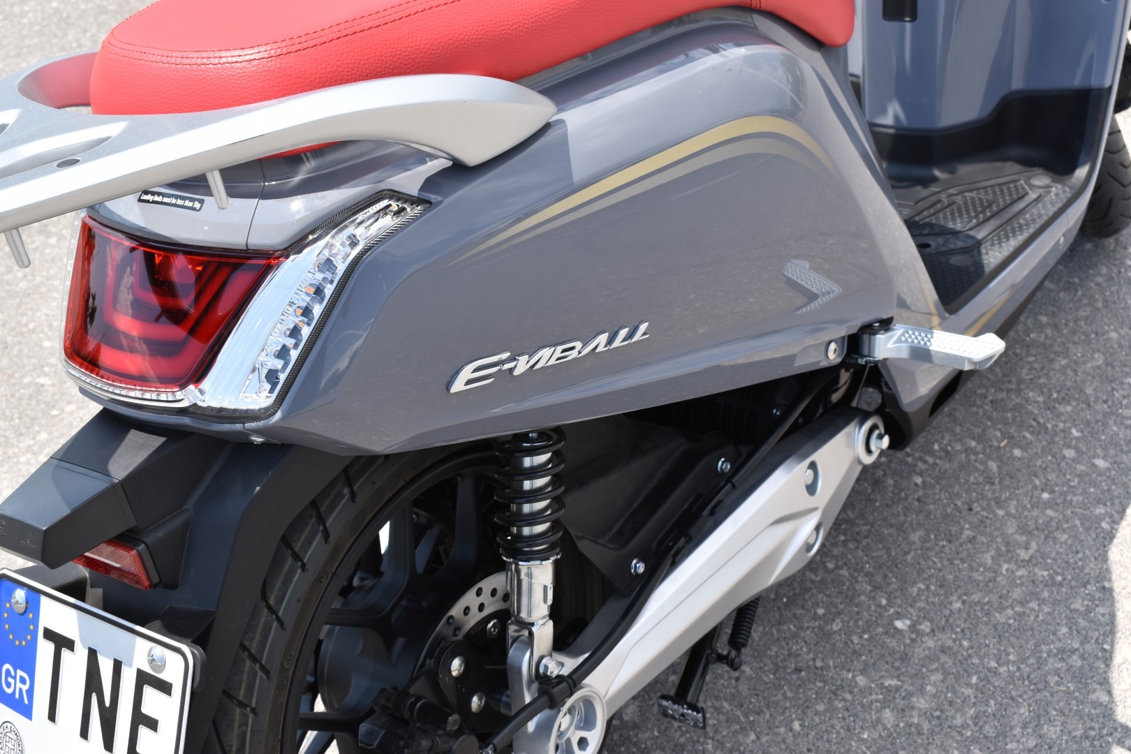 Το… έμπειρο μάτι θα διαπιστώσει αμέσως την απουσία εξάτμισης και τον ιμάντα της Continental που μεταφέρει την κίνηση από τον ηλεκτροκινητήρα στον πίσω τροχό. Ναι, το μοτέρ βρίσκεται στο κέντρο, χαμηλά και όχι στον τροχό. Αυτό βοηθάει στο καλύτερο “ζύγισμα” με το κέντρο βάρους να είναι όσο το δυνατόν περισσότερο κάτω από τον αναβάτη, με ό,τι αυτό συνεπάγεται. Ο ιμάντας παράγει έναν μικρό θόρυβο κατά τη λειτουργία, αλλά σε καμία περίπτωση ενοχλητικό. Σε κάθε περίπτωση, το e-Viball 125 είναι μακράν πιο “αθόρυβο” σε σχέση με οποιοδήποτε σύγχρονο βενζινοκίνητο σκούτερ.