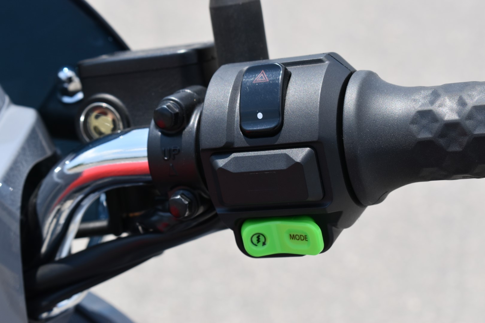 Στη συνέχεια, έχουμε το Cruise Control. Ένα χαρακτηριστικό πολύ εύκολο να ενσωματωθεί σε κάθε ηλεκτρικό όχημα, χάρη στην απουσία “πεταλούδας” και μηχανικού γκαζιού. Αναπτύσσετε την ταχύτητα που θέλετε και απλώς πατάτε το κουμπί του CC στο αριστερό χέρι. Το σκούτερ θα διατηρήσει την ίδια ταχύτητα, αυτόματα. Τραβώντας ελαφρά οποιαδήποτε μανέτα ή “ανοίγοντας” λίγο το γκάζι, το CC απενεργοποιείται αμέσως.