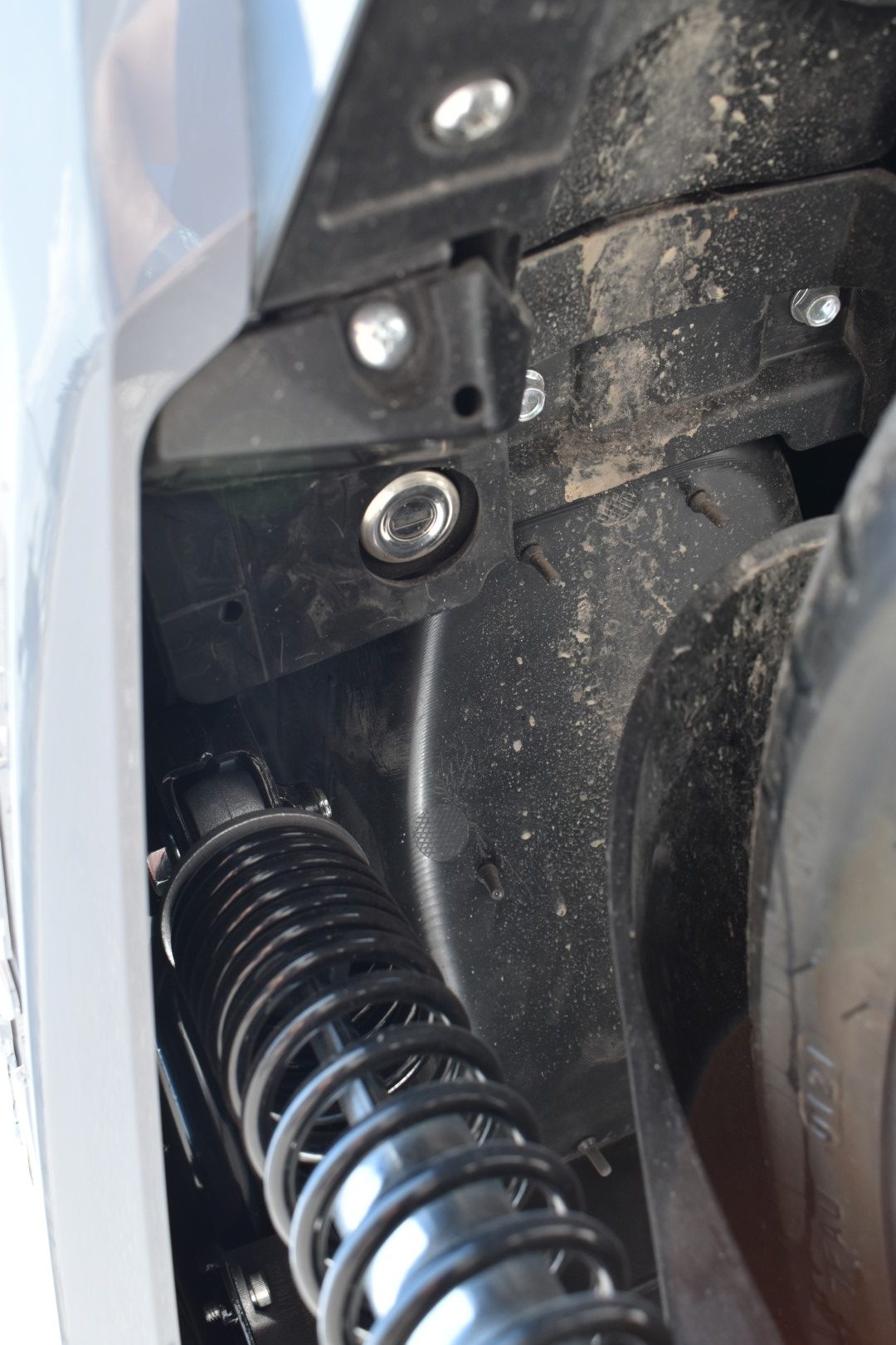 Τα πλαστικά που βρίσκονται… παντού έχουν αποδεκτή ποιότητα και φινίρισμα. Φυσικά, οι κακοί δρόμοι της Ελλάδας θα τα κάνουν σύντομα να τρίζουν, κάτι που δεν μπορείτε να αποφύγετε με κανένα σκούτερ. Τέλος, ένα μικρό φέρινγκ, σκούρο φιμέ, βοηθά στην εκτροπή του αέρα σε υψηλές ταχύτητες.