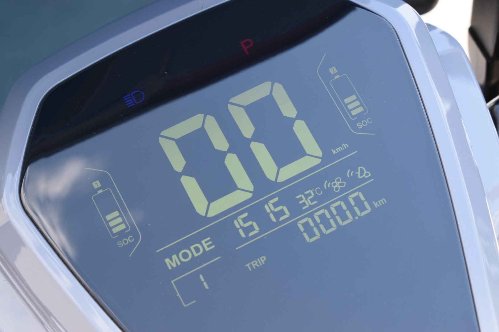 Το καντράν παρέχει πολλές πληροφορίες και έχει λευκά ή κίτρινα ψηφία, ανάλογα με το αν είναι μέρα ή νύχτα. Τα μεγαλύτερα ψηφία δείχνουν την ταχύτητα, ενώ μπορείτε επίσης να δείτε τη στάθμη της κάθε μπαταρίες, το trip, την θερμοκρασία περιβάλλοντος, το Mode λειτουργίας, την ώρα και το “σήμα” GPS και GPRS που πιάνει το εσωτερικό σύστημα συνδεσιμότητας του σκούτερ. Το μειονέκτημα του καντράν είναι πως αντανακλά έντονα το φως υπό ήλιο, με αποτέλεσμα να είναι δυσανάγνωστο την ημέρα.