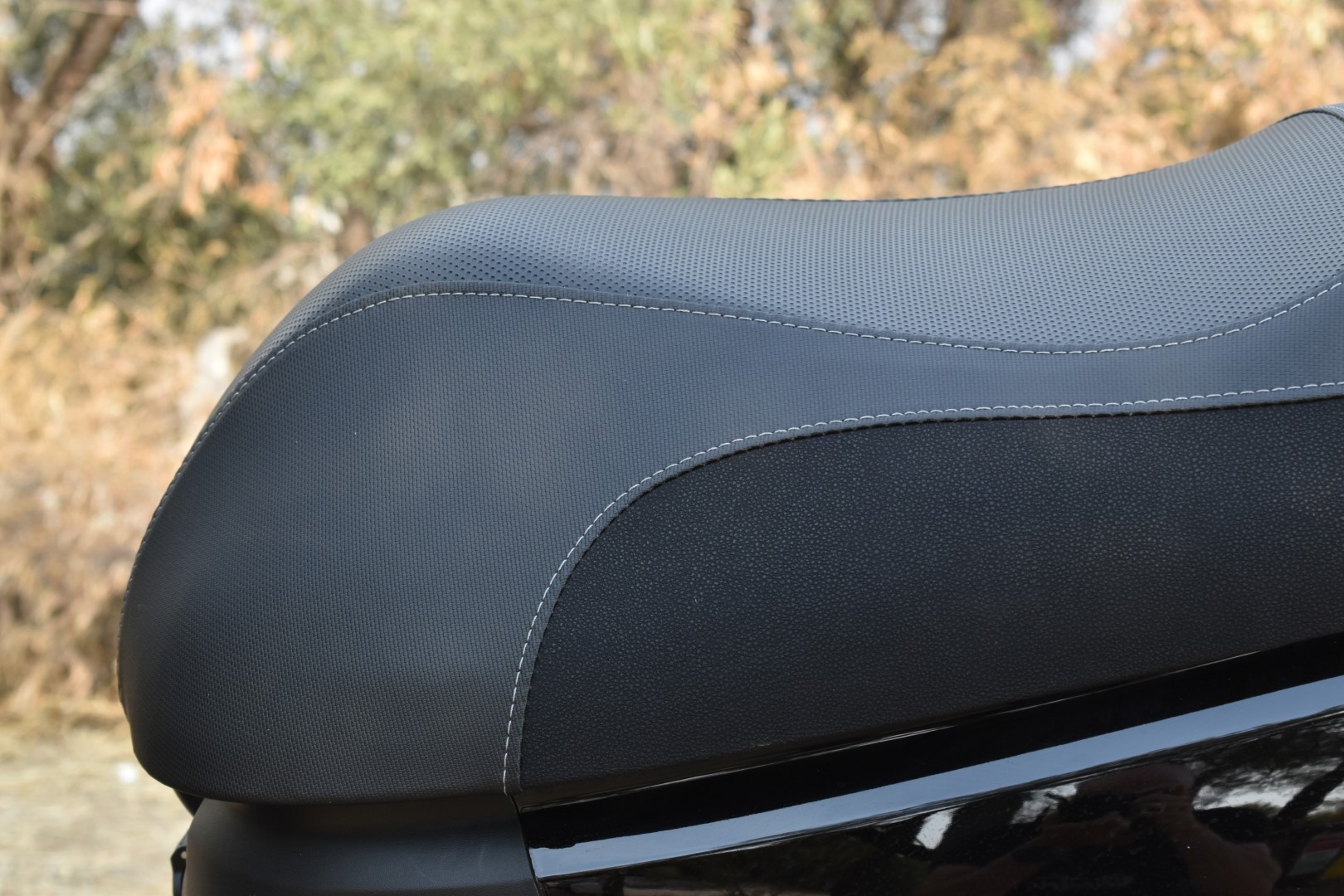 Η σέλα είναι αρκετά μεγάλη, φαρδιά και άνετη, για δύο άτομα, χωρίς να γλιστράει. Το σκούτερ μπορεί να υποστηρίξει συνολικό βάρος 284Kg, αφαιρώντας τα δικά του 95 Kg. Οπότε, σας μένουν 194 Kg για δύο άτομα ή αναβάτη και φορτίο.